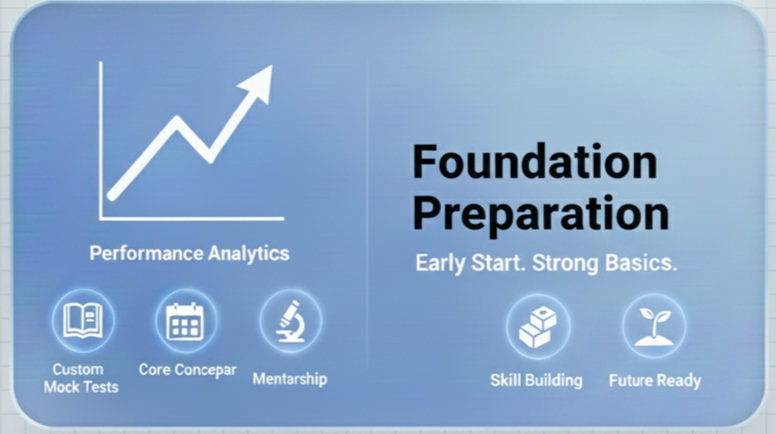A structured, concept-driven learning program for Class 9–10 students designed to strengthen fundamentals, boost confidence, and prepare them early for board excellence and future exams like JEE, NEET, and CET.