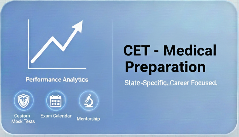 A structured, NCERT-aligned CET Medical preparation program designed to strengthen Biology, Physics & Chemistry fundamentals, improve accuracy, and deliver rank-ready performance through targeted practice and AI-powered analytics.